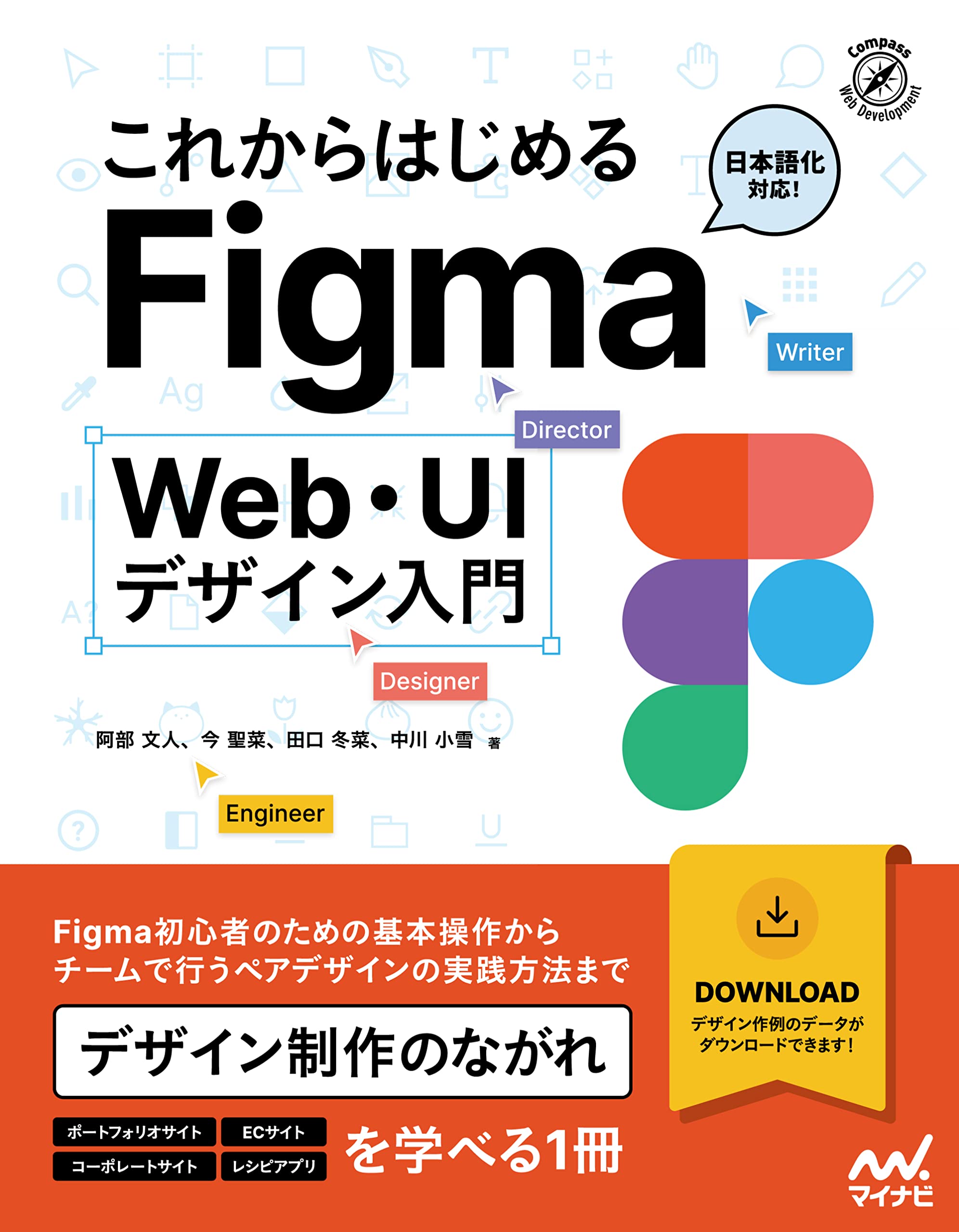 日本語対応のFigmaで4つの作例を制作しながら、Web・UIデザインのワークフローを実践的に習得できる入門書。