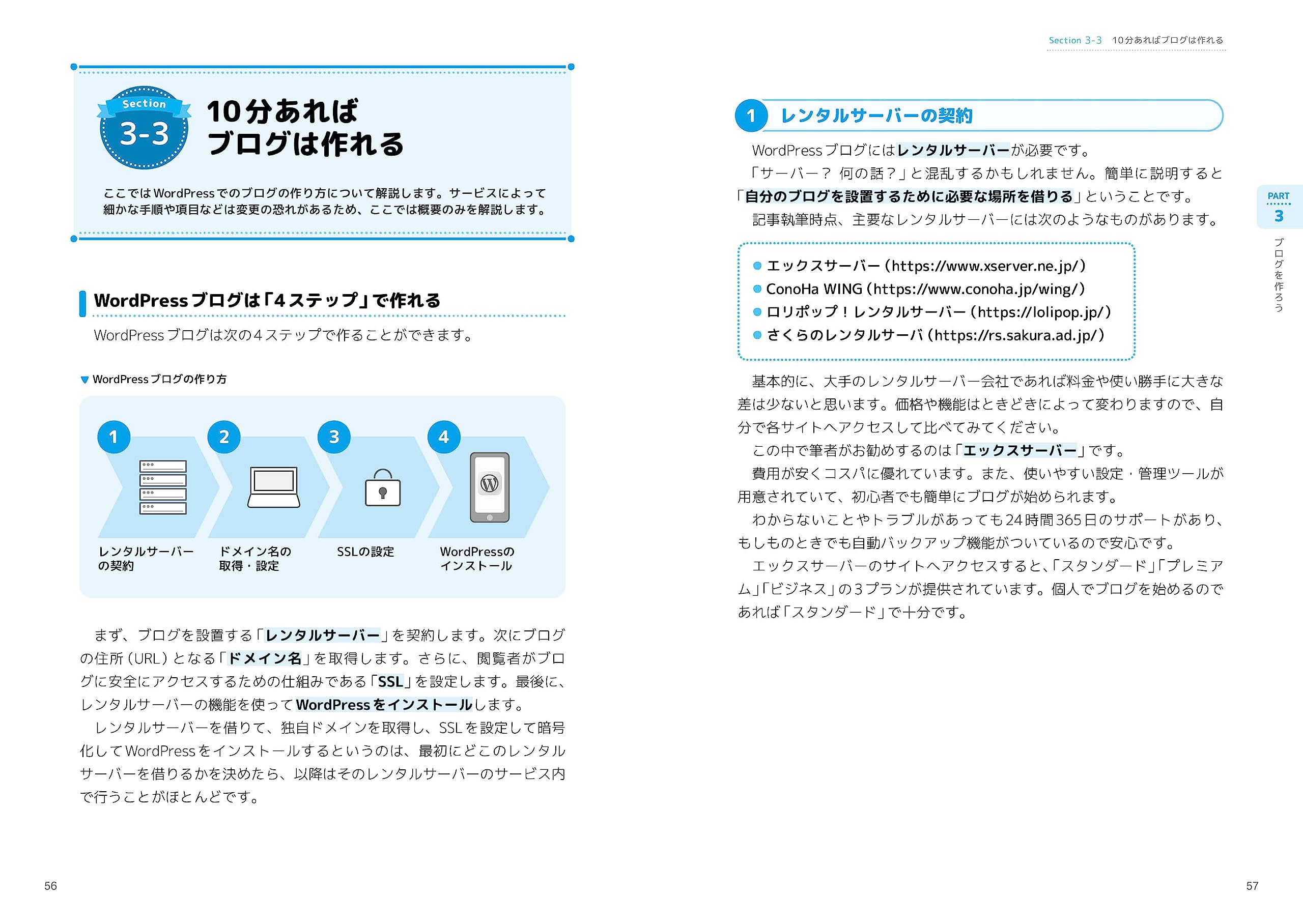Web担当の視点で見ると、SEOの説明はかなり基礎寄りです。ただ、そのぶん初学者には入りやすい。キーワード選定や検索意図の話が、難しい用語に寄りすぎず整理されていました。ブログを日記ではなくメディアとして設計する感覚を持てるのは大きいです。すでに運営経験がある人には既知の内容も多いはずなので、あくまでゼロから副業ブログを始める人向けに割り切った本だと感じました。