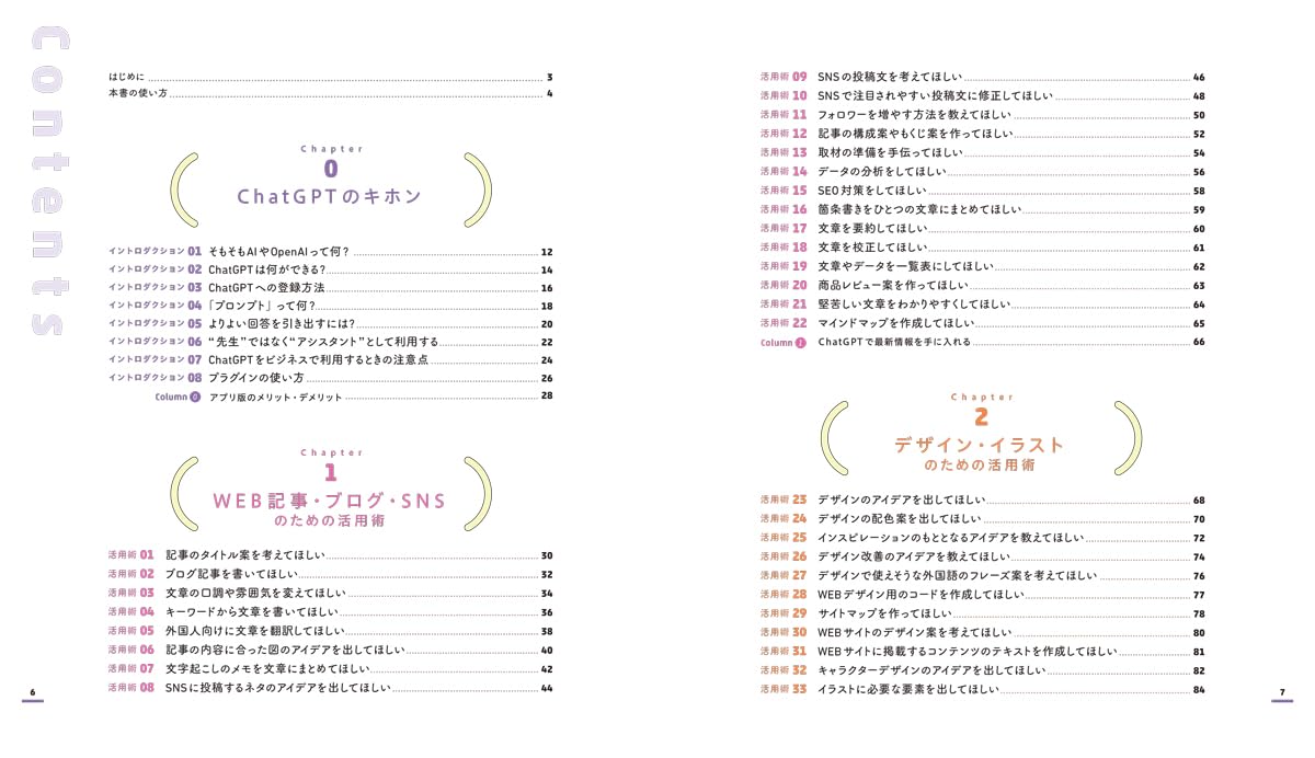アカウント作成や基本的な使い方から始まるため、AIに不慣れな人でもつまずきにくい構成です。専門用語に置いていかれない丁寧な導入が、本書の大きな強みになっています。