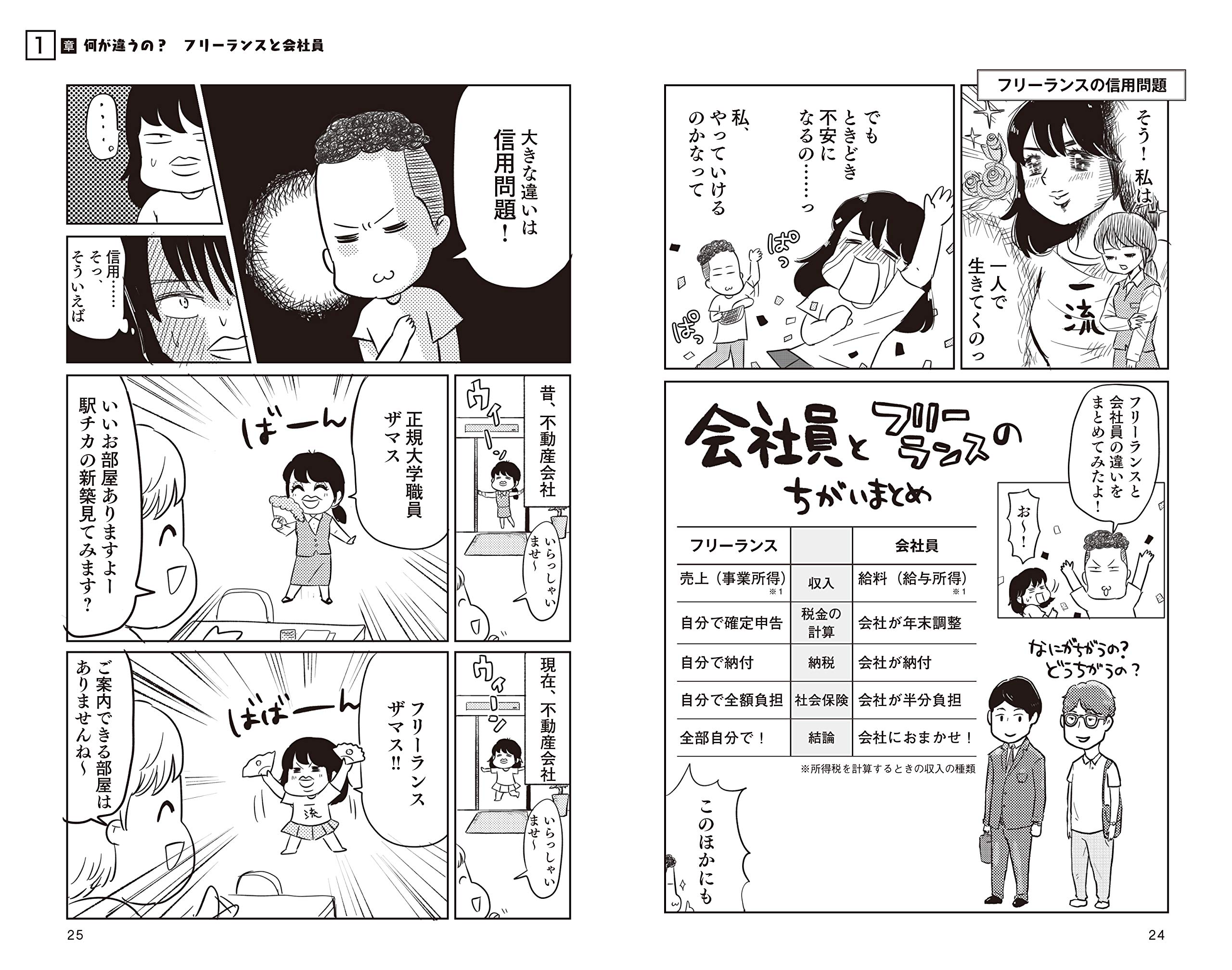 フリーランスが最初にぶつかる税金・社会保険・経費・確定申告の不安をマンガでほぐす入門書——制度の全体像と損を減らすための実務感覚を同時に身につけられる一冊。