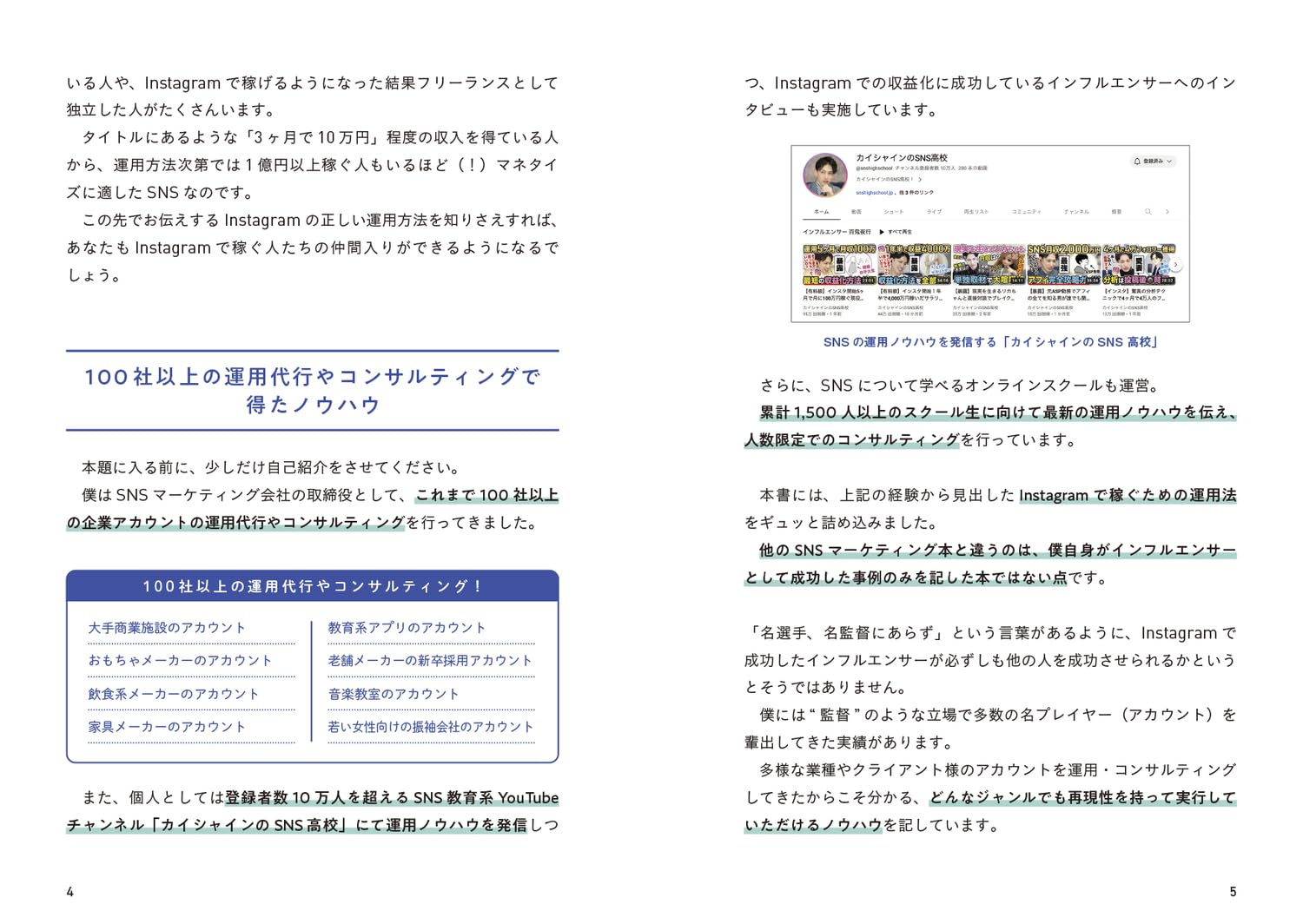 「発信の見た目」ではなく「発信の役割」を整理してくれるのが他のインスタ本との違いだと感じました。フィード、リール、ストーリーズを同じ感覚で扱わないという説明は、実務でも納得感が高かったです。プロフィール設計の章も密度があって、流入後に何を見せるべきかが明確になります。インスタ運用本は抽象的なポエムで終わることも多いですが、本書はかなり実装寄りです。副業だけでなく個人ブランディングの入口としても使えます。