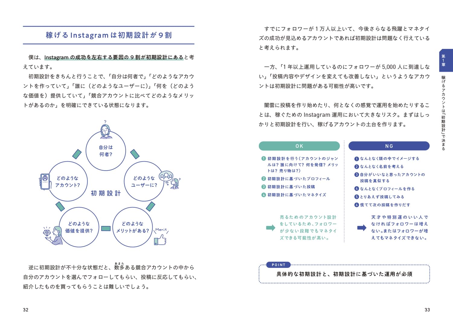 投稿ネタを考えるよりも先に、誰に向けて・どんな価値を・何で収益化するかを言語化する。この土台が曖昧なまま運用を続けると、フォロワーは増えても売上はついてこないと本書は警告します。
