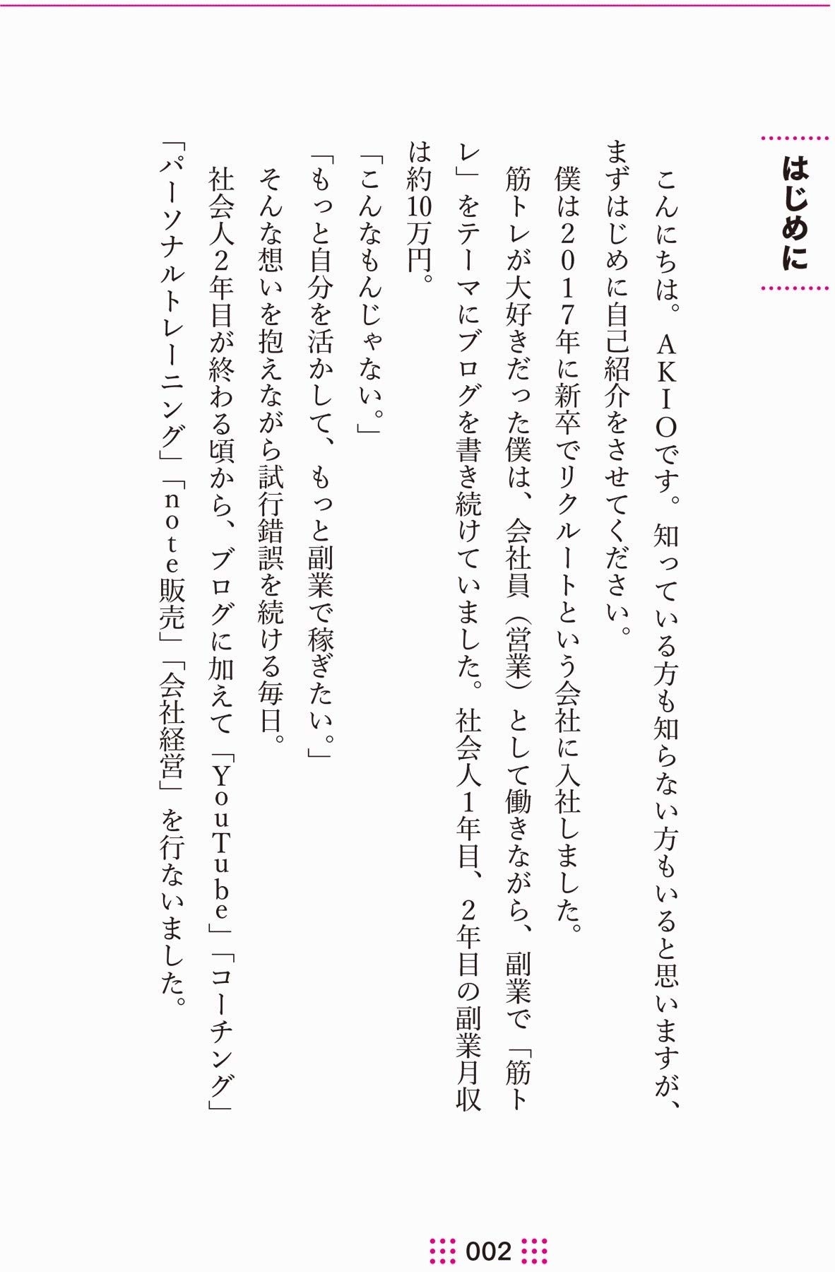 会社員のまま副業を育てる前提で書かれているので、自分の状況にフィットしていて読みやすかったです。特に行動力とルーティンの章は、営業の現場でもそのまま応用できる話が多く、仕事と副業を分けて考えなくていいんだと思えるようになりました。逆に、具体的な副業メニューの比較や手順を期待するとやや物足りないかもしれません。まず動き方の型を身につけてから実務本に進みたい人には合う本です。