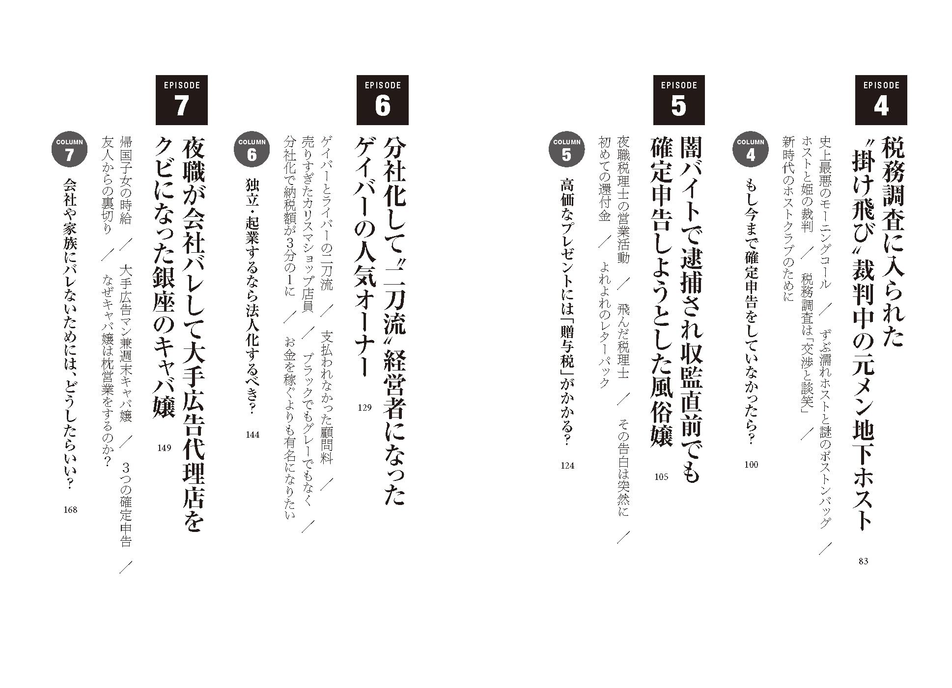 税金の知識がないことで、多額の追徴課税・副業バレによる解雇・最悪の場合は逮捕という事態に陥った実例が複数収録されている。夜職に限らず副業を持つすべての人への切実な警鐘だ。