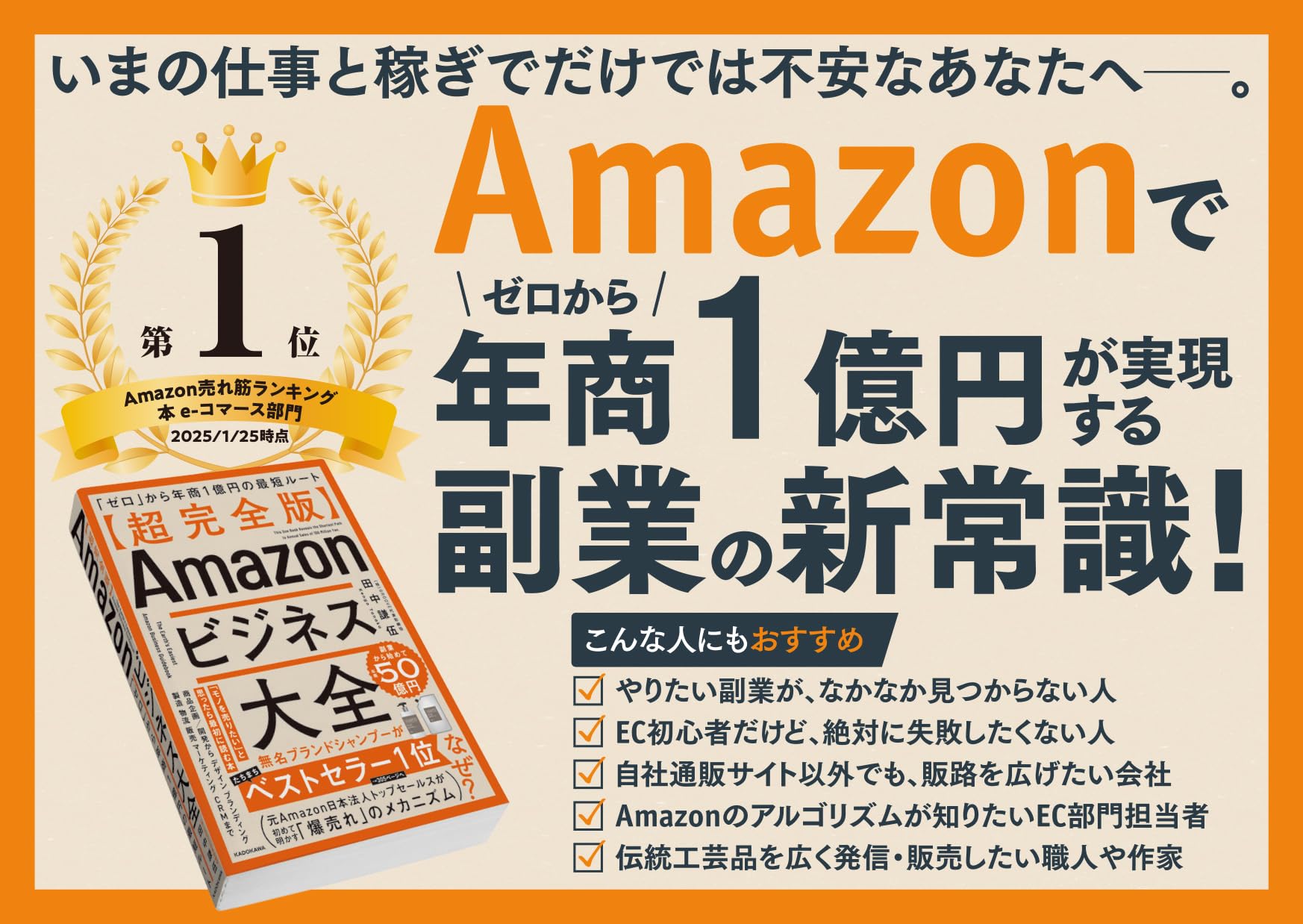 2025年4月の発売直後にAmazonビジネス書部門でベストセラーを獲得。著者はYouTubeチャンネル「たなけんのEC大学」でも精力的に発信しており、本書はそのノウハウを書籍として体系化したものだ。「ゼロから年商1億円」という具体的な数字を最短で達成するロードマップとして、Amazon物販に真剣に挑む人の必携書となっている。