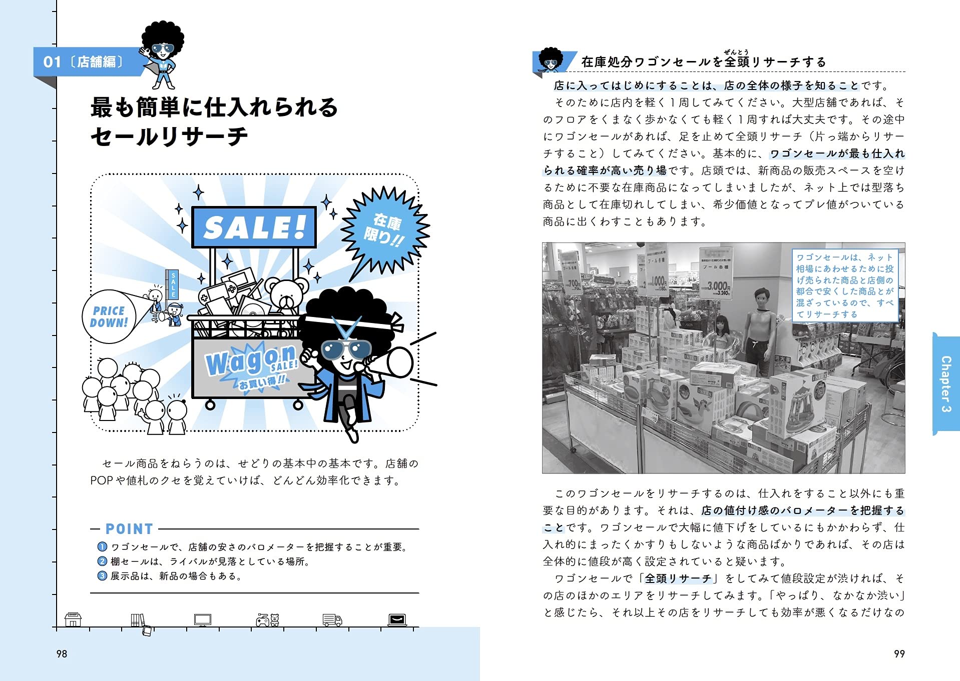 ワゴンセールや在庫処分棚の見方など、店頭リサーチの実践感をつかみたい人におすすめです。