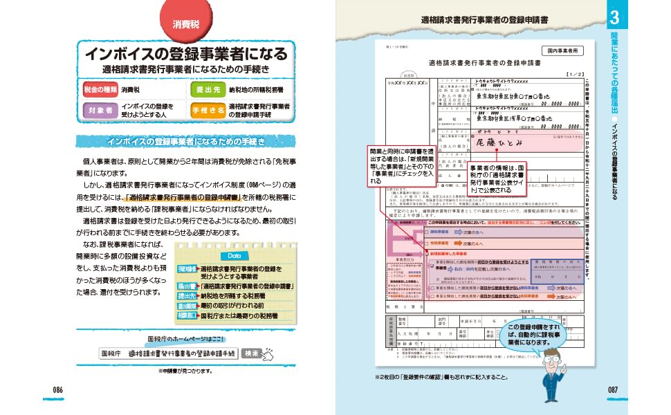開業届や青色申告関連の書類を、見本だけでなく提出の目的とあわせて解説しています。「何を出すのか分からない」という初学者のつまずきを減らしてくれる構成です。