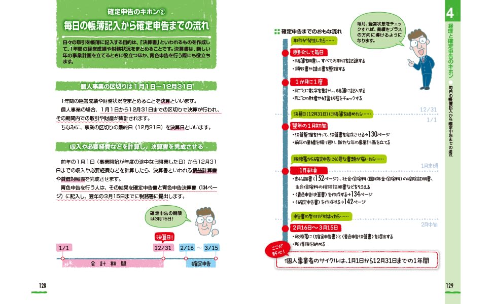 本書の価値は、開業前の判断から申告までを時系列で整理している点にあります。断片的な知識ではなく、1年目に必要な作業の流れが見えるので、初心者でも次のステップに迷いにくくなります。