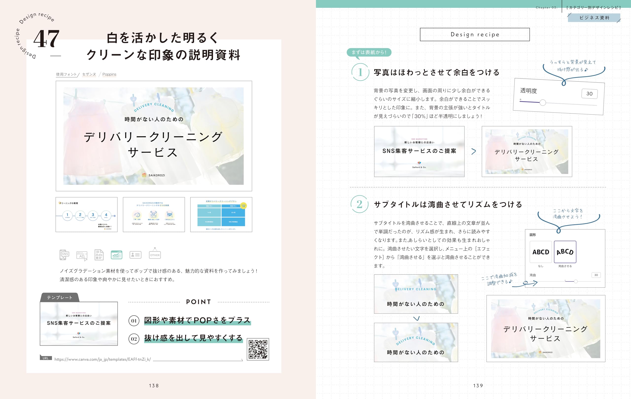 - ○操作手順だけでなくデザインの基礎原則も解説されており、「プロっぽく見えるコツ」が身につく