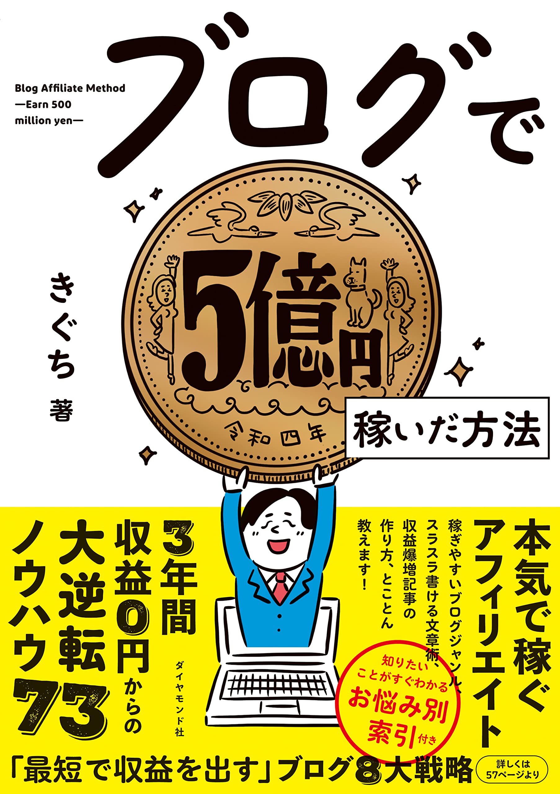 ブログ歴18年・累計5億円を稼いだトップブロガーが、最初の3年間は収益ゼロだった逆転劇をもとに編み出した73のテクニックを惜しみなく公開——ジャンル選定から文章術・SEO・マネタイズ・SNS活用まで、ブログ収益化の全工程を一冊で体系的に学べる実践書。