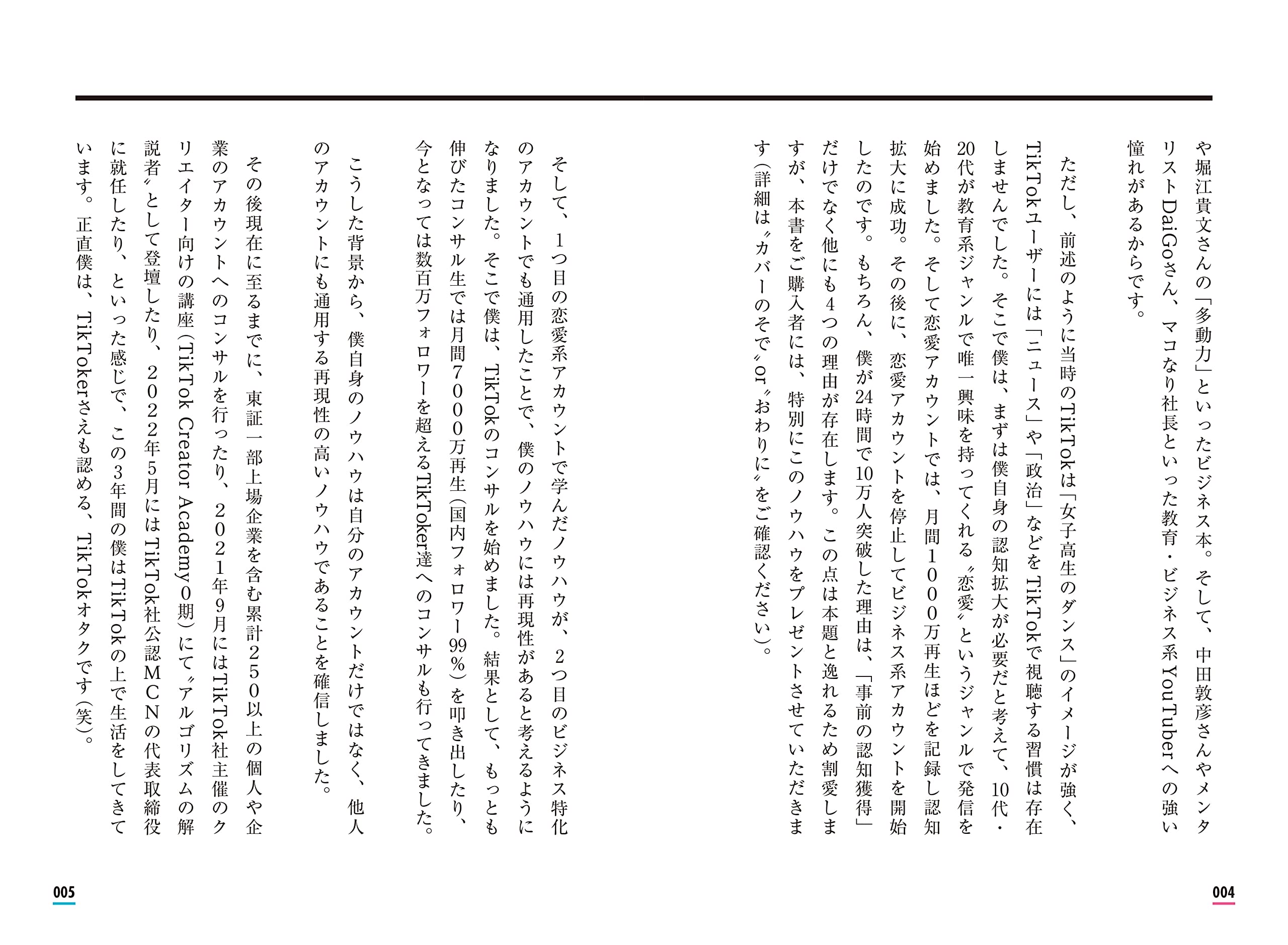 TikTokのアルゴリズムとアカウント設計を軸に、フォロワーゼロからでもバズを生み出してビジネス成果につなげる再現性のあるノウハウを体系化した一冊——250超の企業コンサル実績を持つ著者が、型と考え方を惜しみなく公開している。