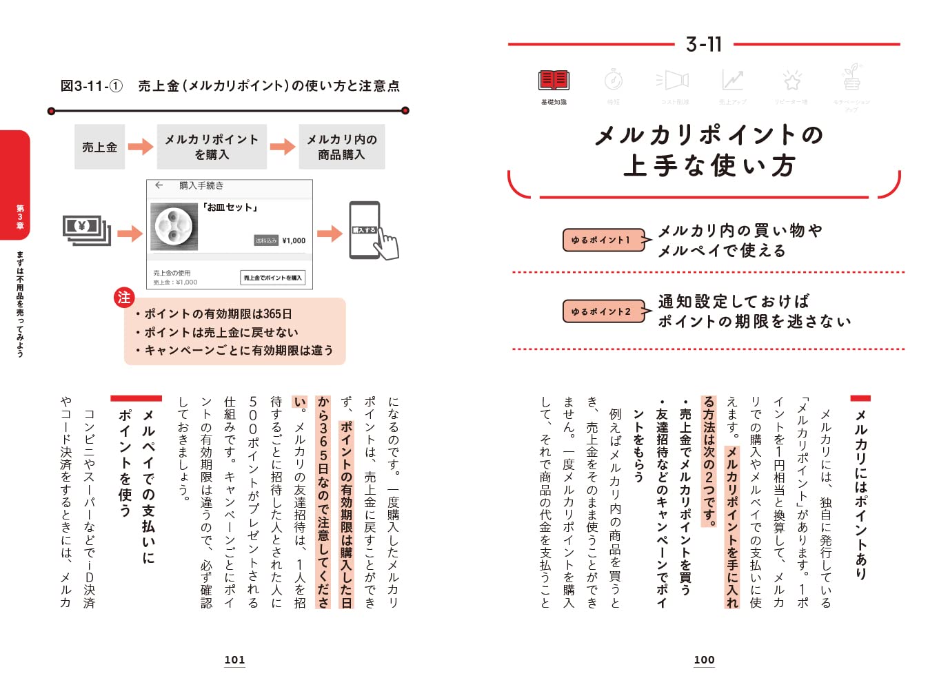 まず家にある不用品を売ることからスタートし、慣れてきたらメルカリShopsでショップを開設するという段階的なロードマップが示されています。元手ゼロから始めて徐々にスケールアップする道筋がわかるため、リスクを抑えて進められます。
