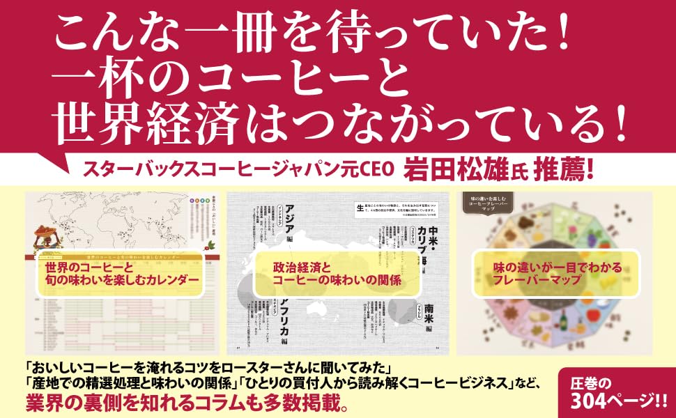 - ○コーヒーの味・産地・経済・歴史を横断的に学べる構成で、一冊でコーヒーの全体像をつかめる