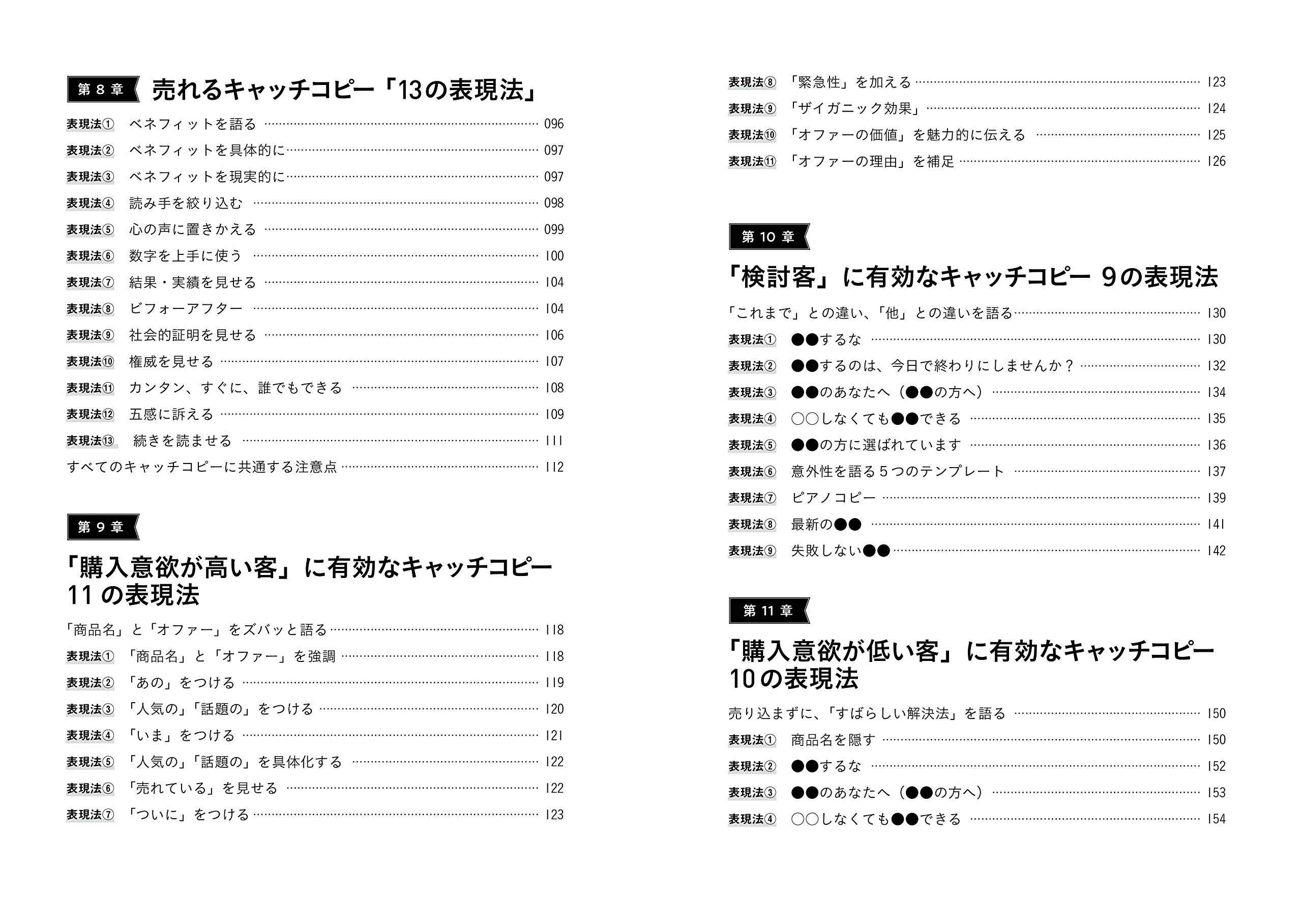 - 9第9章 「購入意欲が高い客」に有効なキャッチコピー11の表現法