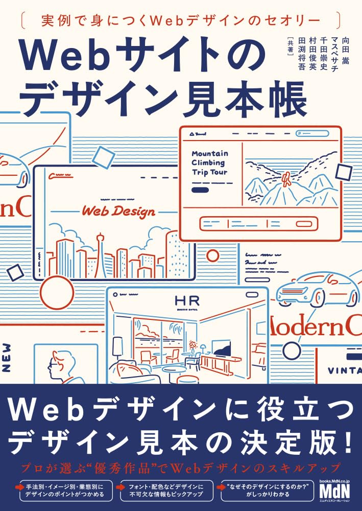 A. アイデアインプットとトレンドキャッチアップを目的にするなら、久保田涼子の『Webデザイン良質見本帳[第2版]』が429点の収録数と7軸の引き方で最も使い回せる。デザインの思考プロセスまで学びたいなら加藤千歳の『Webデザイン&ワイヤーフレーム比較見本Book』、2025年刊行の最新事例で学びたいなら向田嵩の『Webサイトのデザイン見本帳』を選ぶと良い。